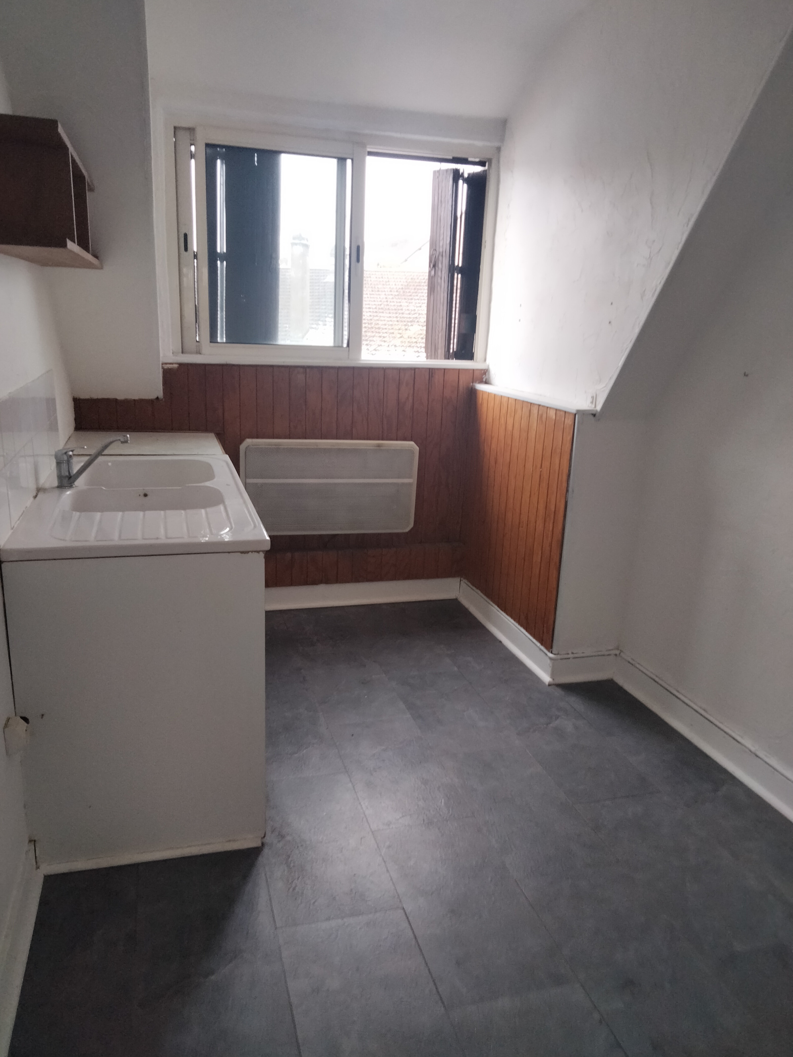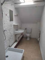 - Au 1er étage : appartement vide de 62 m² comprenant entrée avec nombreux rangements, cuisine-séjour avec placards, 2 chambres avec placards, salle de bains, wc. ( CC gaz de ville )