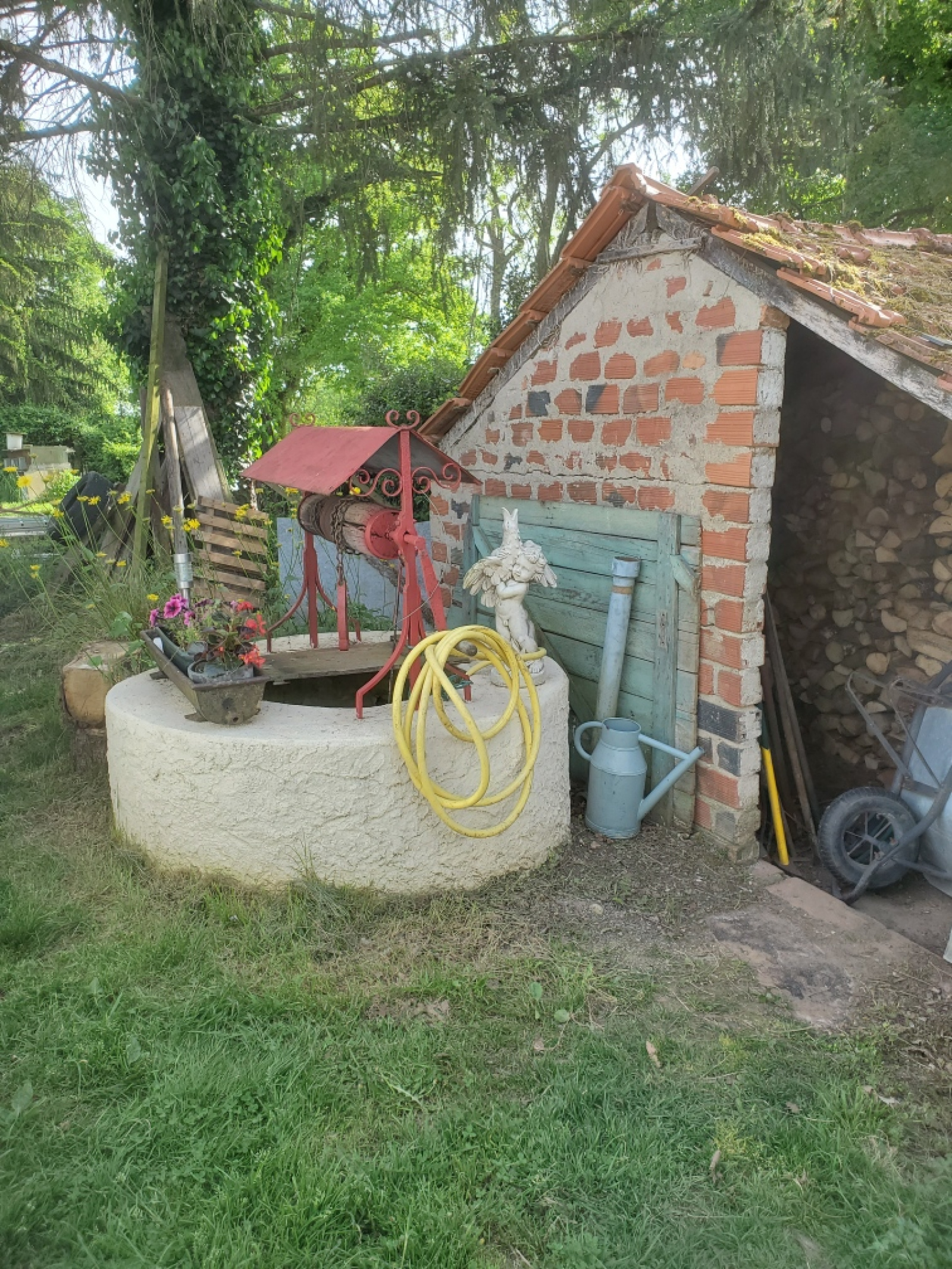 Coup de coeur assuré pour cette ravissante maison de campagne de style longère, en pierres, située au calme dans un cadre verdoyant, sans vis à vis, offrant de belles possibilités d'agrandissement, comprenant entrée, cellier, salle à manger-salon avec poêle à bois, chambre, cuisine aménagée, dégagement avec placard, salle d'eau avec double vasque, wc, garage attenant carrelé, à l'étage : grand palier ( prévoir finitions ), pièce palière pouvant servir de petite chambre, 1 grande chambre, pièce dressing, wc sanibroyeur, partie grenier aménageable ; remise attenante, dépendance indépendante, pergola, remise en bois, puits, piscine hors-sol, 4 422 m² de terrain engazonné et arboré avec portail motorisé.
